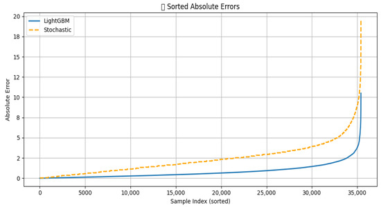 Comparison of the absolute error of LightGBM and Stochastic models.