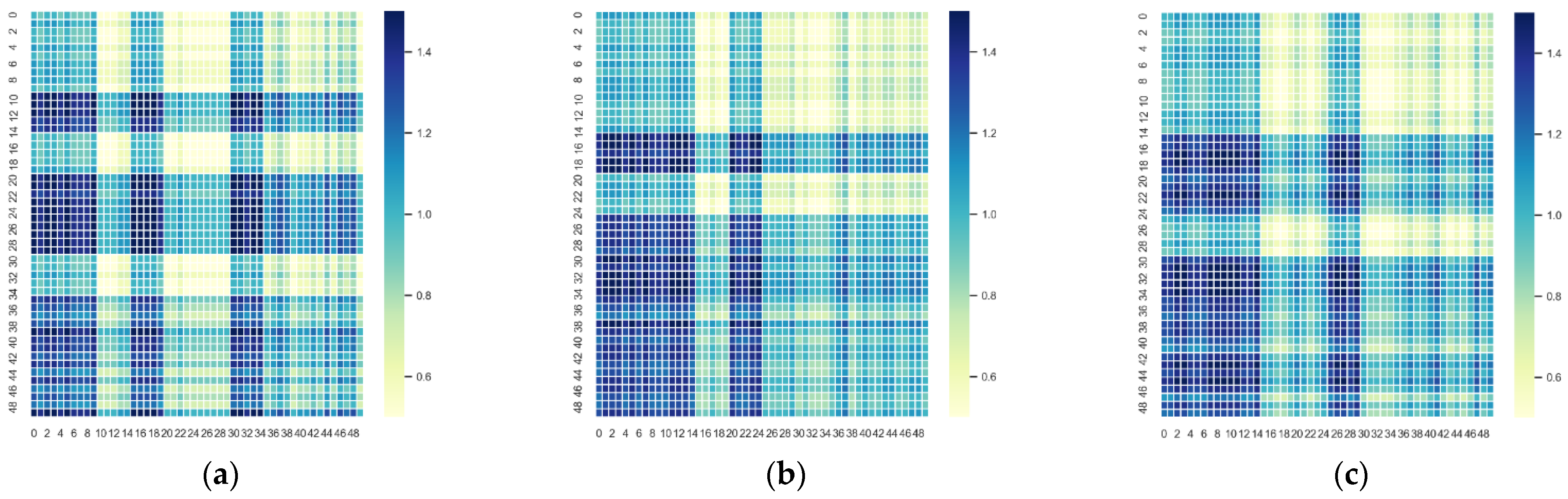 Figure 1, the uniformly distributed pheromone concentration matrix results in equal initial equipment transition probabilities. While this approach increases randomness in solution searching, it also delays convergence toward the optimal solution. The non-uniform pheromone concentration matrix with heat map as