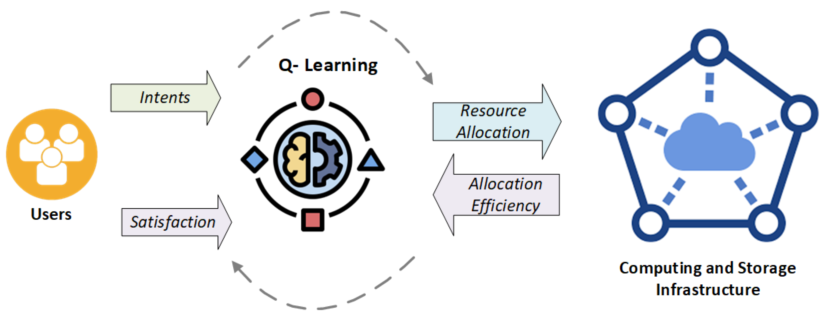 9], a Q-learning-based RL approach is proposed to translate user intentions into efficient resource allocations within a cloud infrastructure, continuously improving resource distribution based on both user satisfaction and infrastructure efficiency.