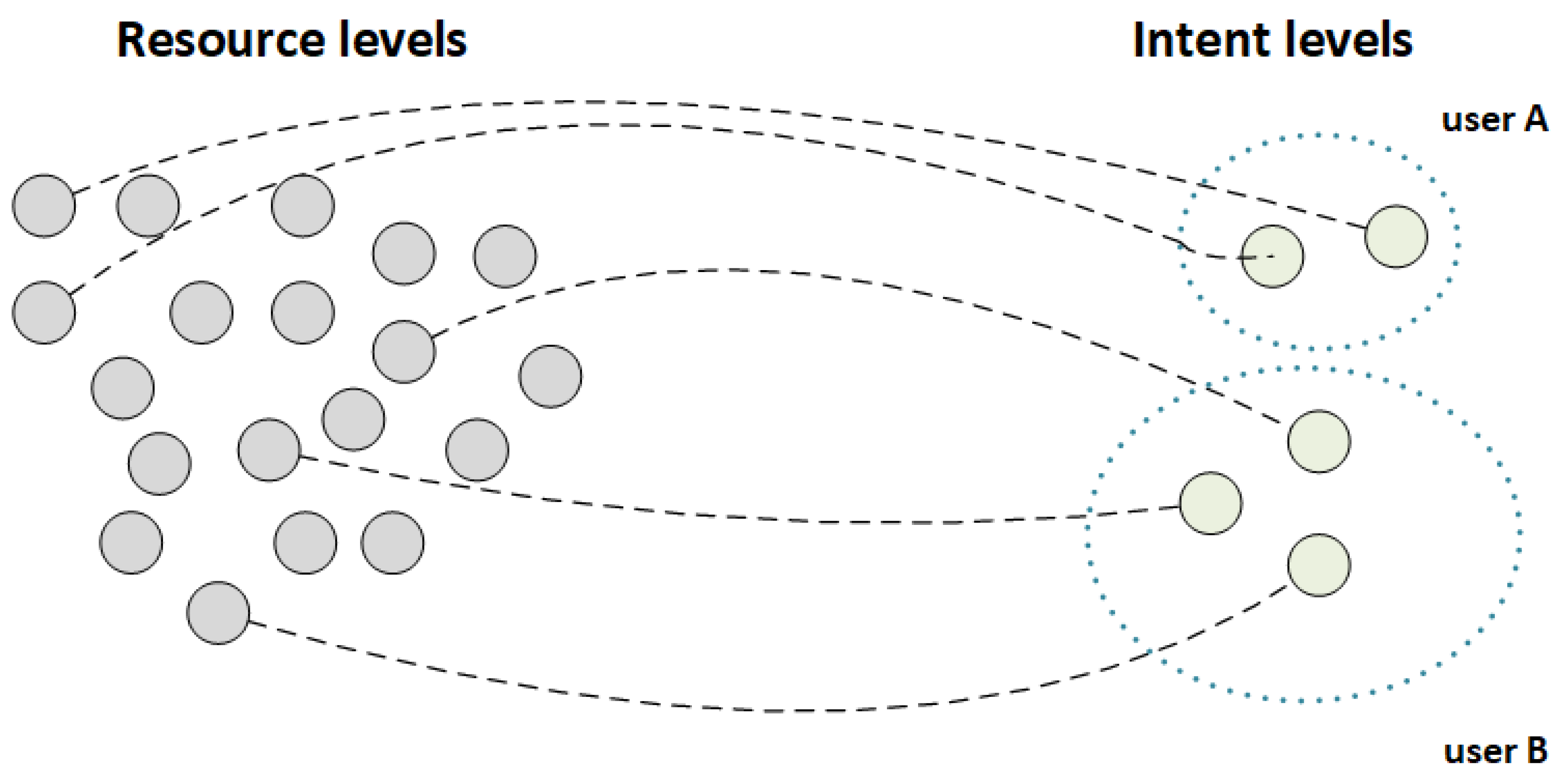 We assume that these “intent levels” of a user/application are much smaller in number than the “resource levels” (
