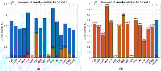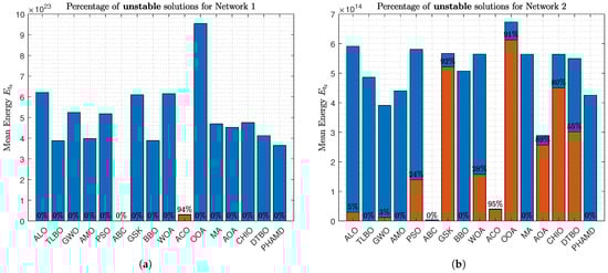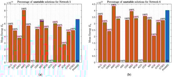 A stability-first evaluation has been adopted. In the pinning control setting, feasibility (stability) is the primary objective; therefore, candidates that are energy-efficient but unstable are not considered valid solutions. Cross-method comparisons have been reported under equal population and iteration budgets and with explicit instability flags, so as not to conflate algorithmic merit with implementation details or with external enumeration required by fixed-dimension heuristics. Within this framing, PHA–MD consistently identified smaller, stable pinning sets and competitive energy levels across increasingly challenging network topologies.