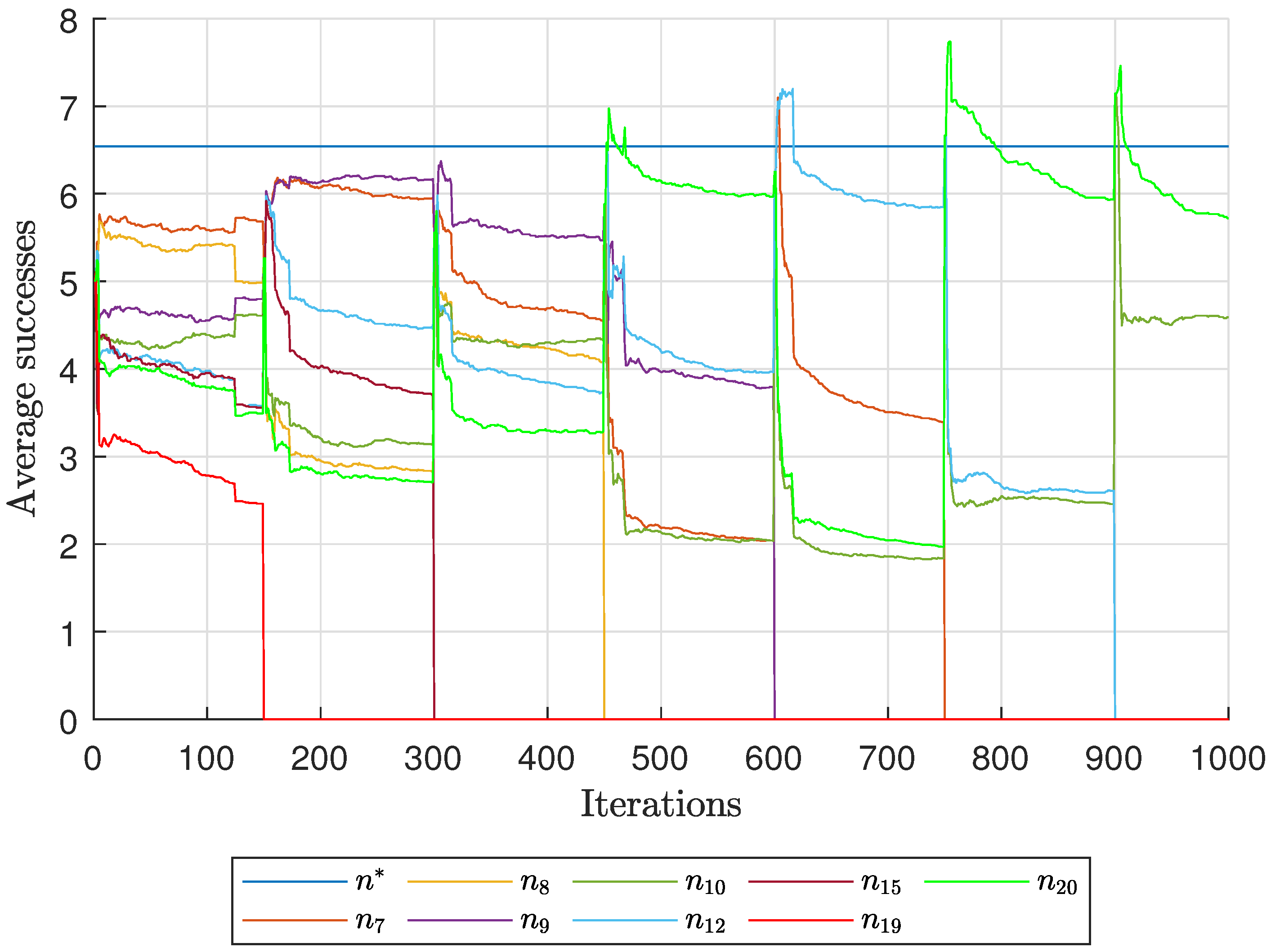 The optimization problem addressed by PHA-MD involves both combinatorial and continuous elements, further complicating the use of traditional algorithms. PHA-MD was specifically designed to handle the dynamic dimensionality needed to identify the minimum number of pinning nodes, a task that requires agents to propose different sets of nodes. This flexibility in dimension handling is not supported by the aforementioned algorithms, which rely on a fixed dimension setup. For instance, initializing agents with a predefined number of dimensions for both gain constants and potential pinning nodes imposes assumptions that may not be accurate.