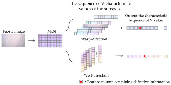 The sub-column space slides along the longitudinal direction to generate the V feature sequence corresponding to the warp-direction (the lengthwise threads of the fabric) of the image, as shown in Equation (2).