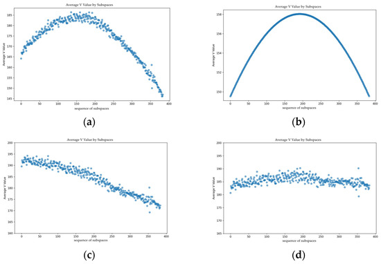 The acquired textile images are converted to the HSV color space, and the V channel is extracted as the brightness feature. This study proposes a Dynamic Subspace Feature Extraction (DSFE) method, where the brightness values within each subspace are summed and averaged to obtain the V feature value of that subspace. By traversing these subspaces across the fabric image, a complete V feature sequence for the entire fabric is generated. The DSFE visualization process is shown in Figure 2.