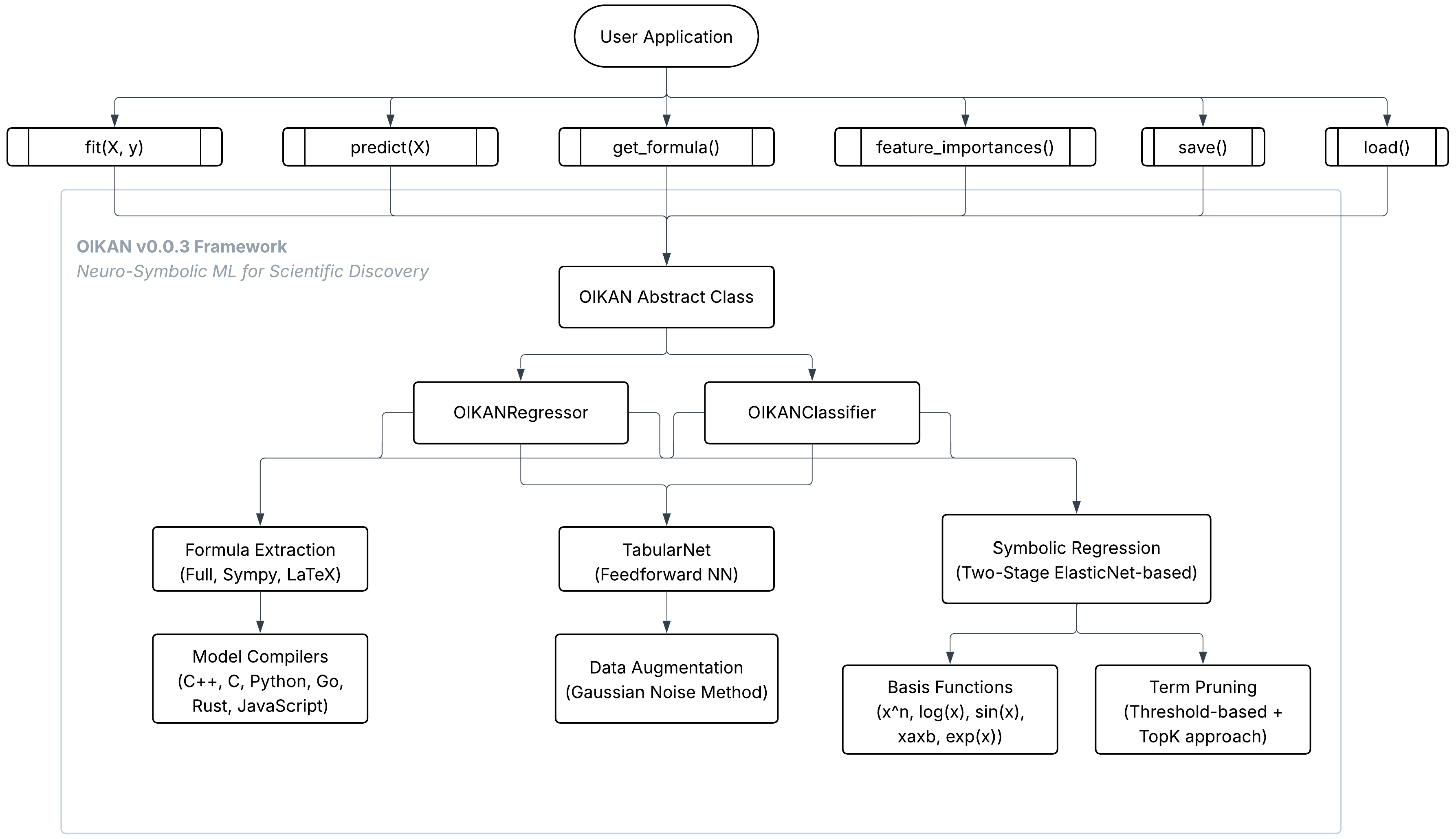| Source Code | Official GitHub repository with full implementation and examples | https://github.com/silvermete0r/oikan (accessed on 1 September 2025) |