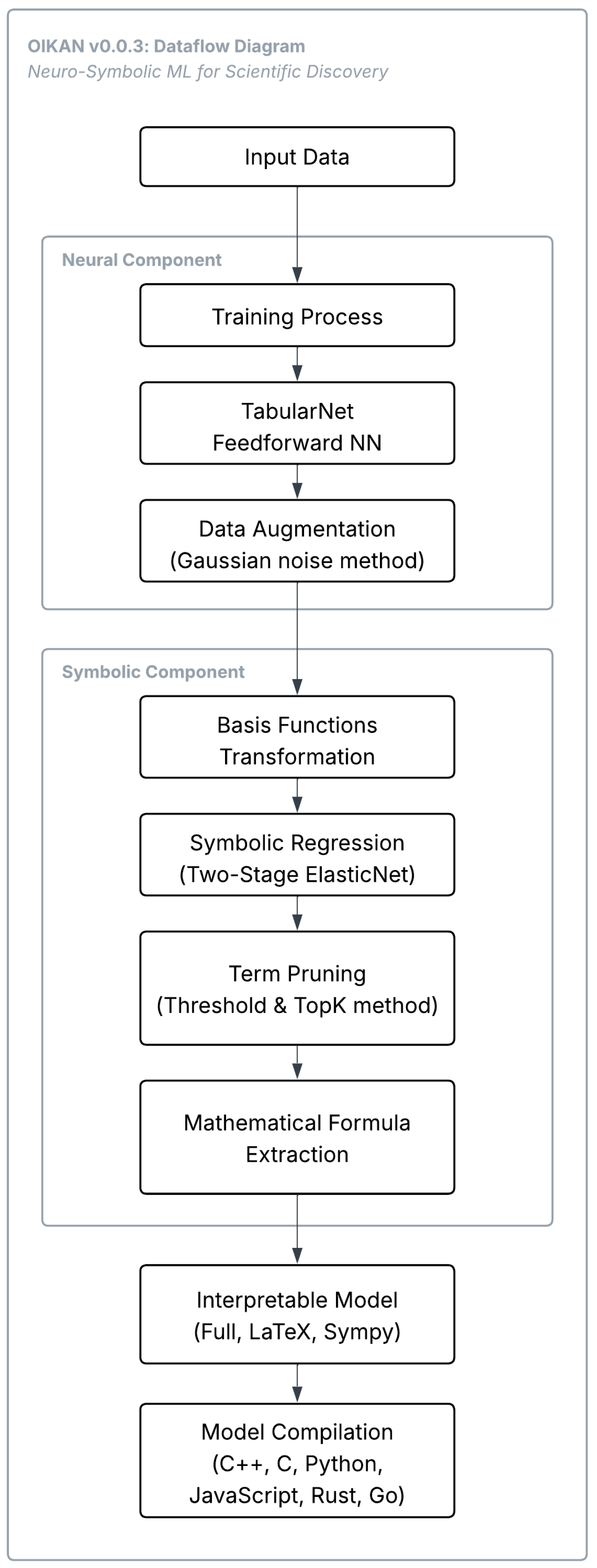 | Benchmark Results | Updated PMLB benchmarking notebook comparing OIKAN, XGBoost, and DecisionTree | https://www.kaggle.com/code/armanzhalgasbayev/oikan-v0-0-3-auto-benchmarking-sr/ (accessed on 1 September 2025) |