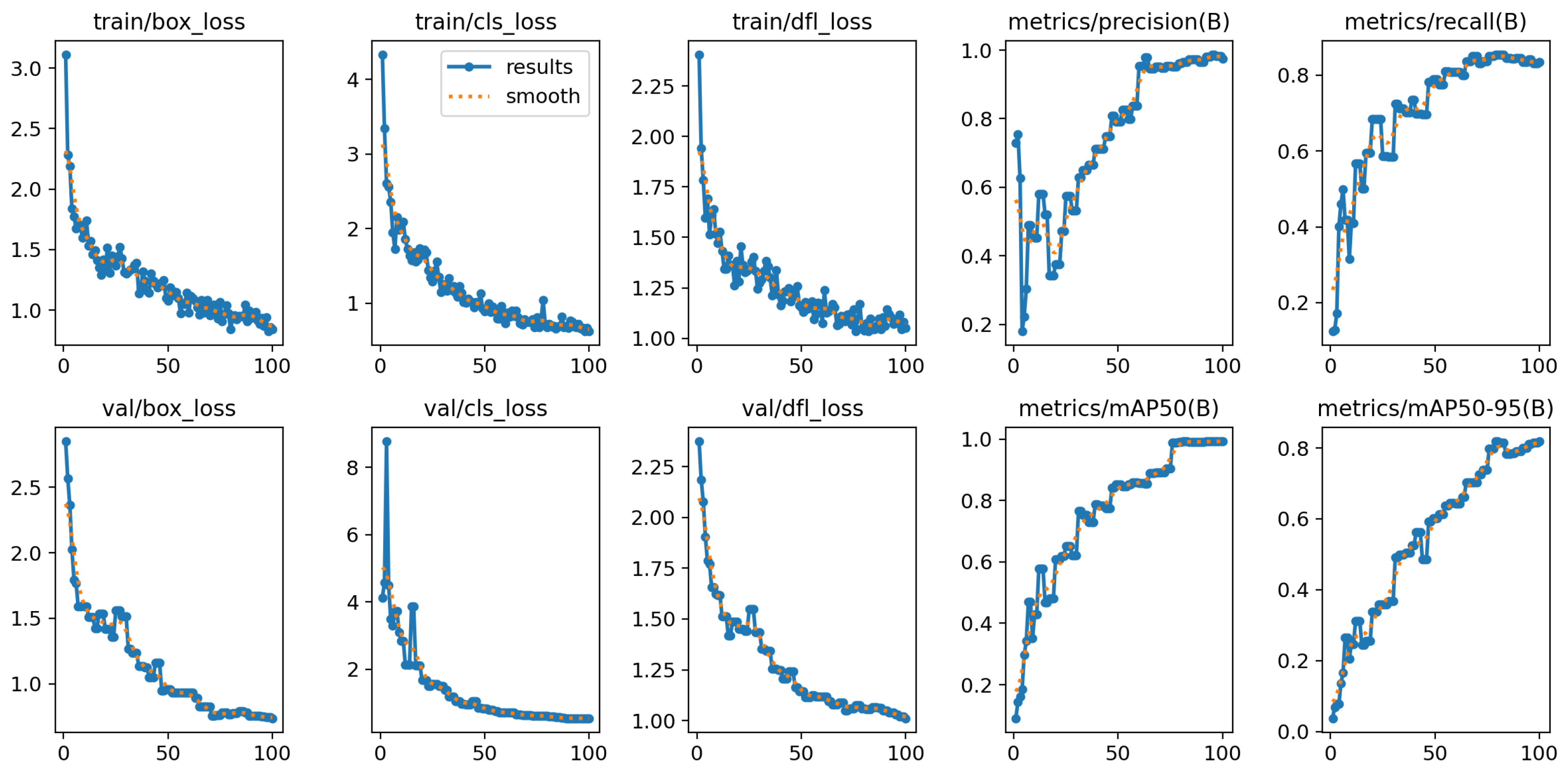 - mAP50–95: ≈0.81, demonstrating consistent performance under stricter IoU thresholds;