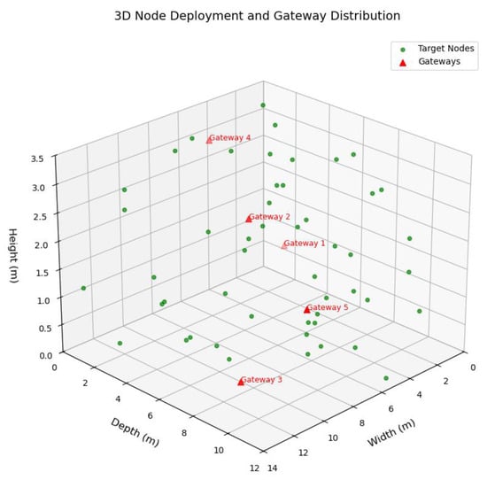 In the test area, we deployed four anchor nodes with fixed positions and 20 target nodes to be localized. Figure 11 depicts the distribution of gateway nodes and target nodes in a real scenario.
