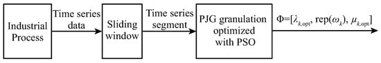 where and represent the optimal lower and upper bounds for the granule interval, respectively. Once the boundaries are obtained, they define the optimal interval granule for the segment . The complete process is illustrated in Figure 2.