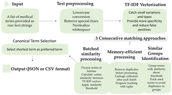 Automated thesaurus generation workflow using TF-IDF vectorization and cosine similarity.