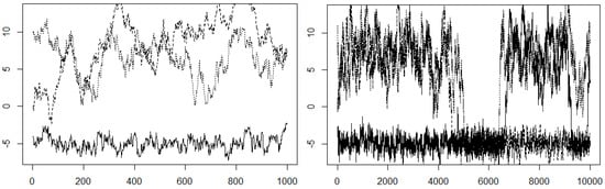 - Stephens, M. Simple Examples of Metropolis–Hastings Algorithm. Available online: https://stephens999.github.io/fiveMinuteStats/MH-examples1.html (accessed on 5 December 2019).