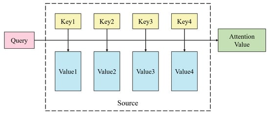 The self-attention mechanism is shown in Figure 5. Mathematically, the core computation of the attention mechanism involves three key matrices: Query, Key, and Value. Its essence lies in calculating similarity through matrix operations between Query and Key, obtaining a weight distribution after scaling, and then performing weighted aggregation with the Value matrix to generate the output representation. This series of matrix operations constitutes the basic computational paradigm of the attention mechanism.