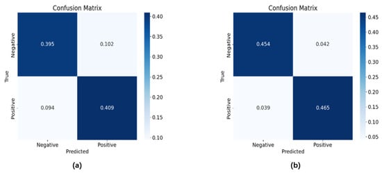 Confusion matrix of different modalities fusion in DEAP dataset: (a) only EEG single modality; (b) multimodal fusion.