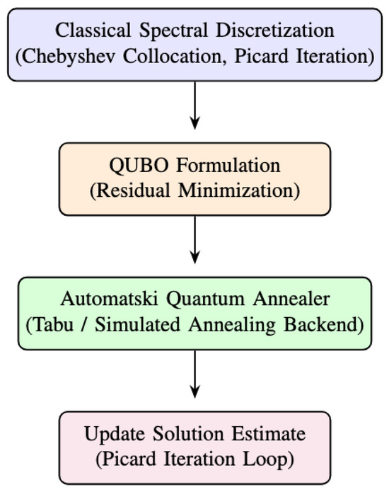 We investigate hybrid quantum–classical solvers for nonlinear boundary value problems using Chebyshev spectral collocation. Unlike prior methods such as H–DES, which repeatedly recompile circuits and encode the entire spectral basis on the quantum processor, our framework offloads only the residual minimisation to a [...] Read more.