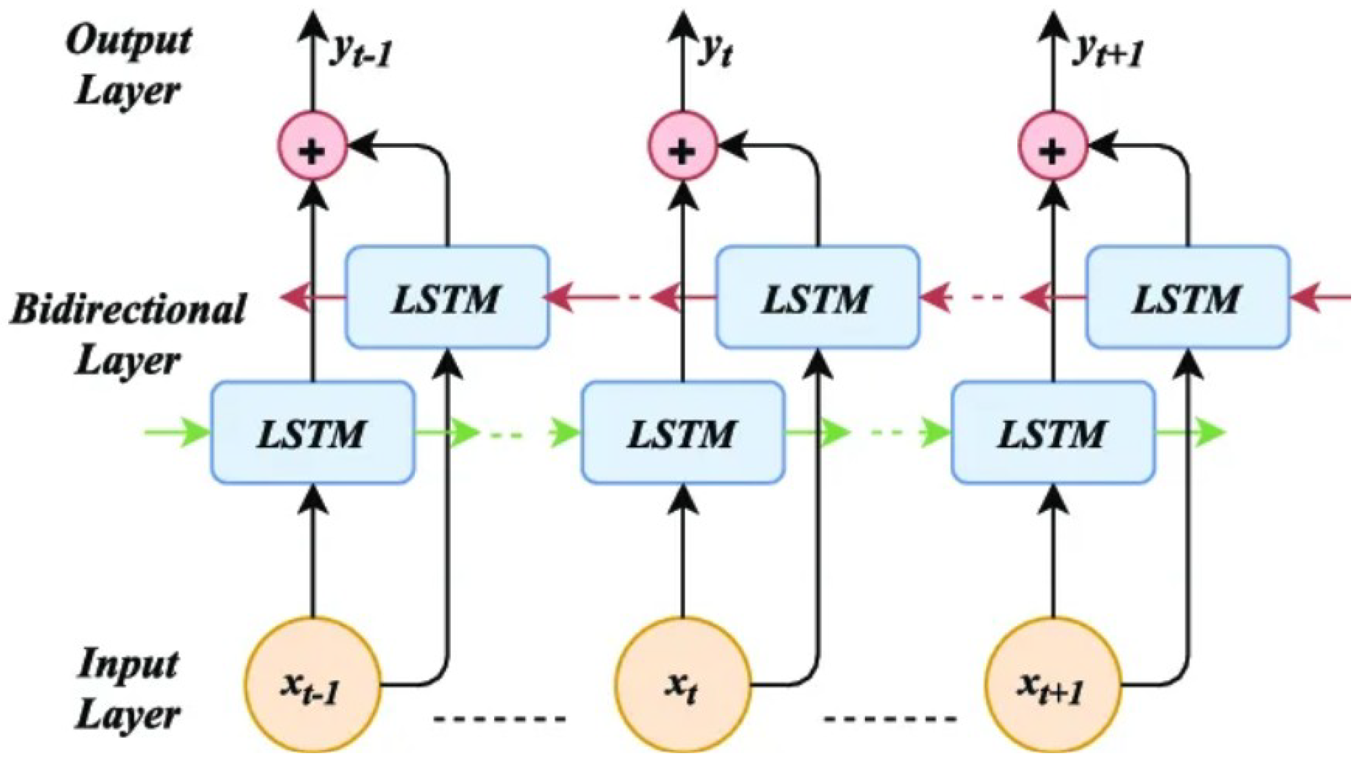 Figure 2 illustrates the structure of a Bi-LSTM network, where inputs are processed in both forward and backward directions to capture comprehensive temporal dependencies.