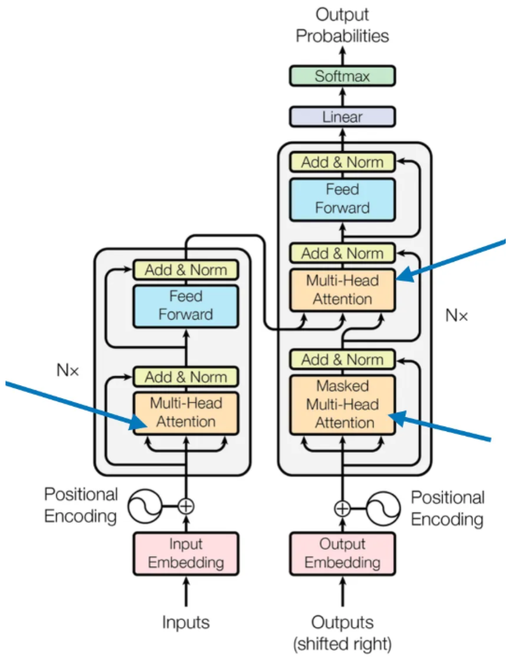 Multi-Head Self-Attention: Four heads, key dimension = 64. Output shape: .