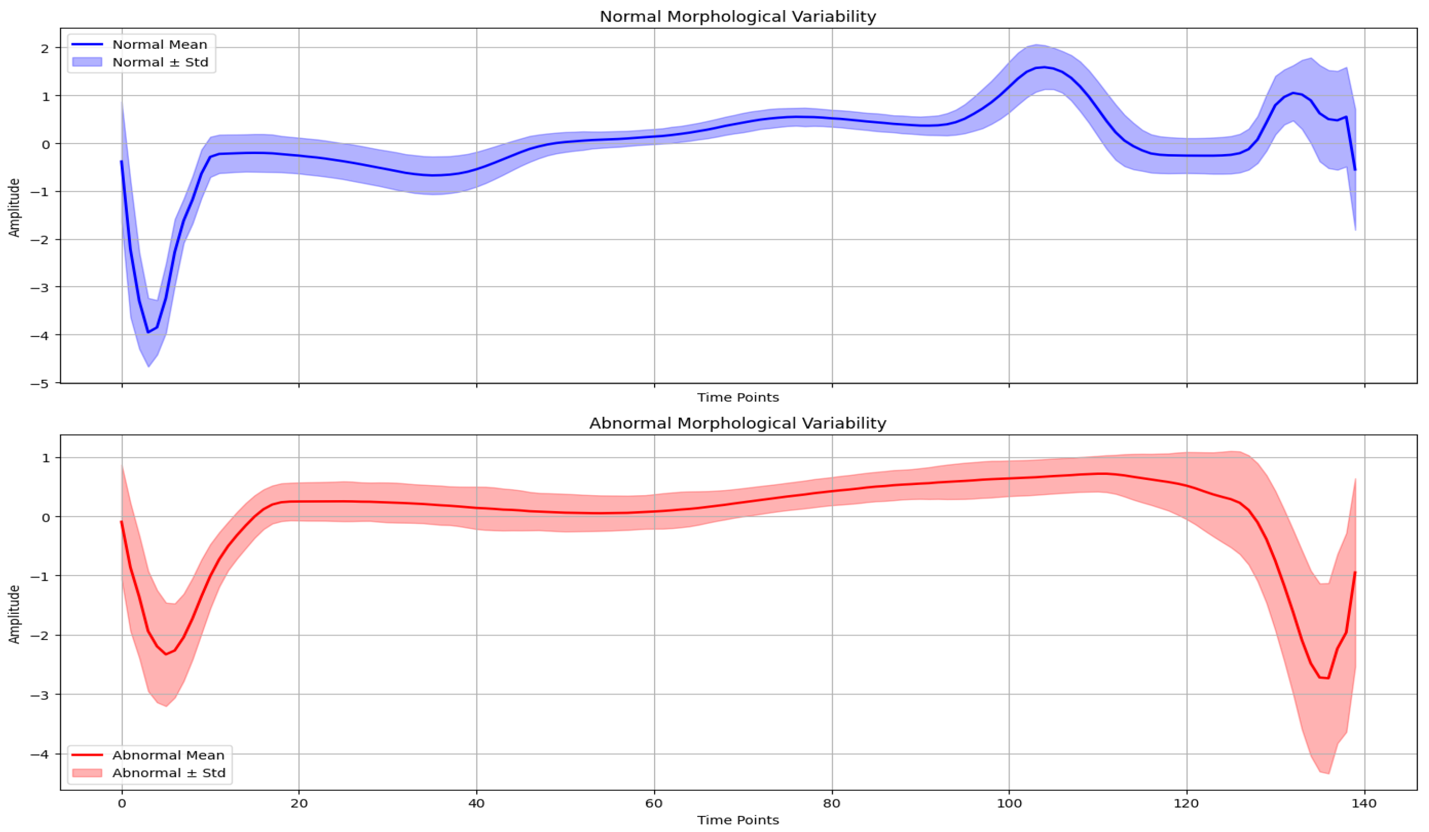 9]. The dataset’s structure enables a balanced representation of both normal and abnormal ECG signals, facilitating the development of robust models that can generalize across different classes. The dataset’s size and diversity make it a suitable candidate for training deep learning models that require large amounts of labeled data to achieve high accuracy.