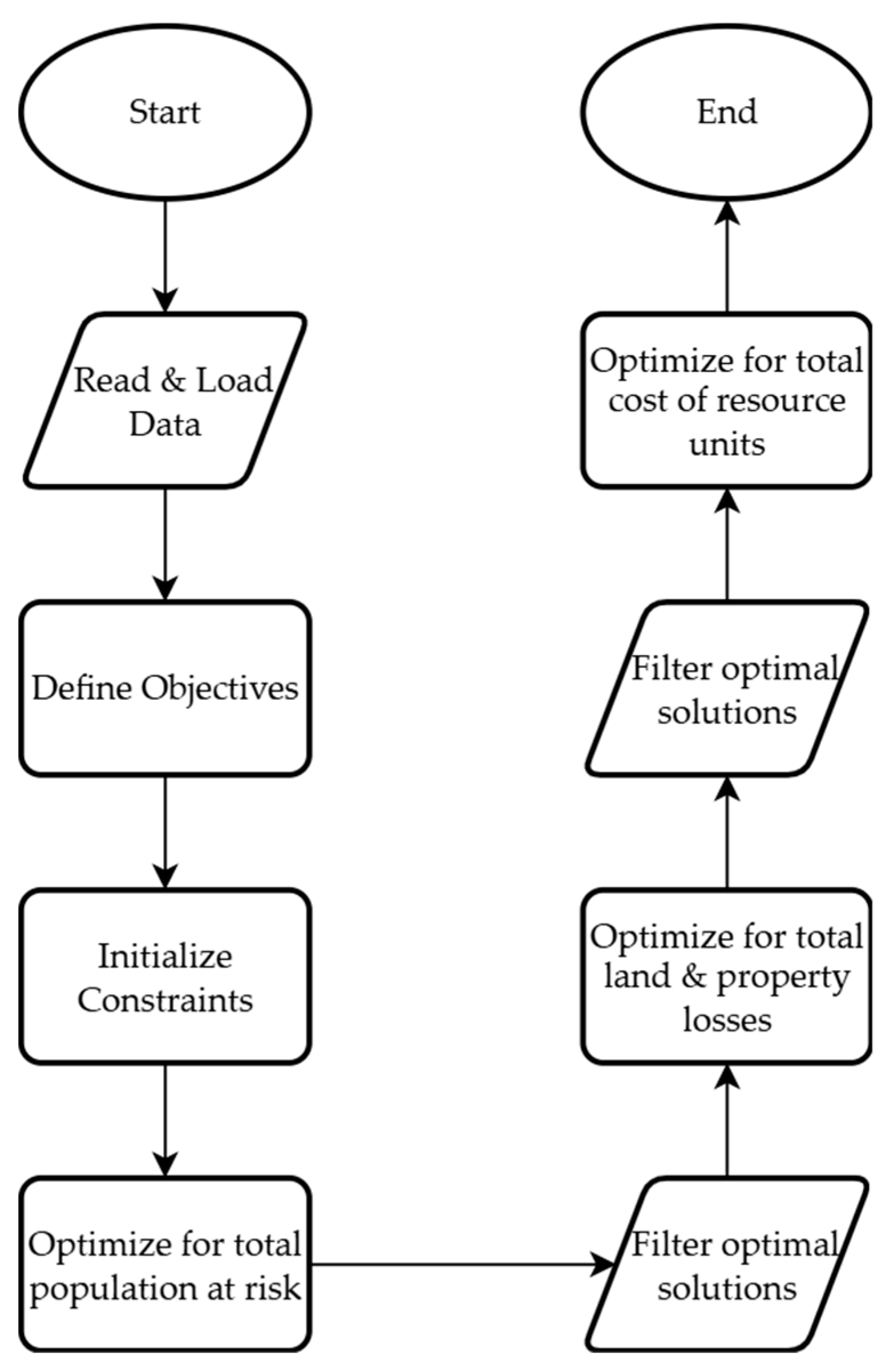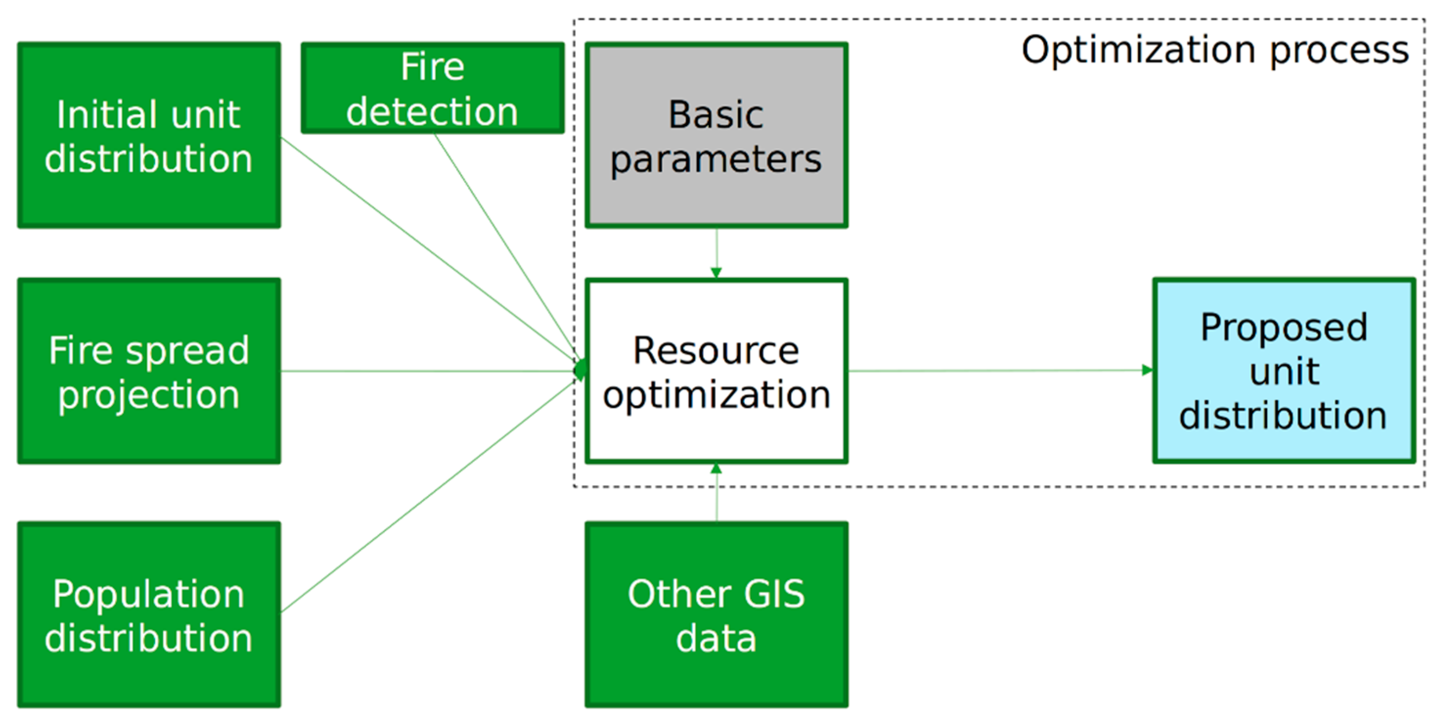 - Zhou, S.; Erdogan, A. A spatial optimization model for resource allocation for wildfire suppression and resident evacuation. Comput. Ind. Eng. 2019, 138, 106101. [Google Scholar] [CrossRef]