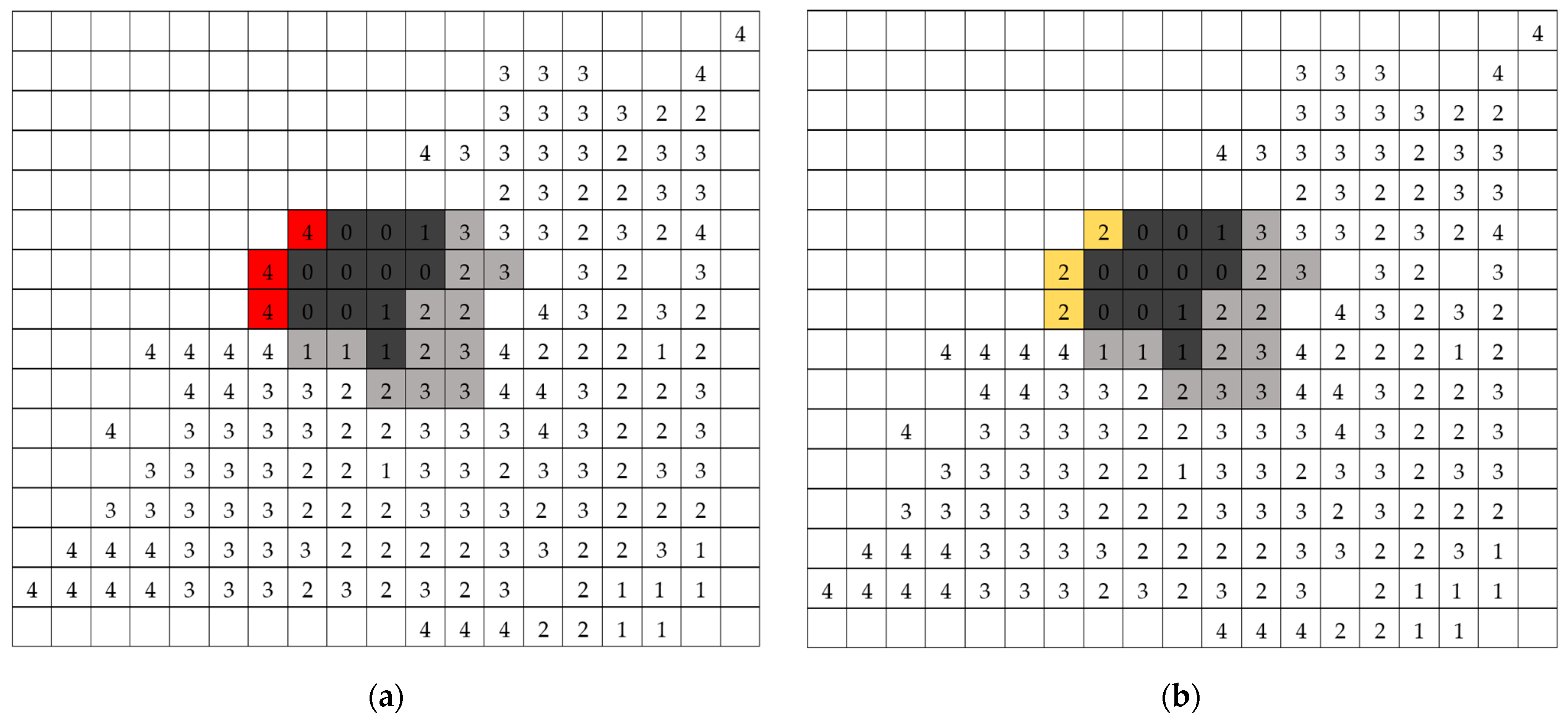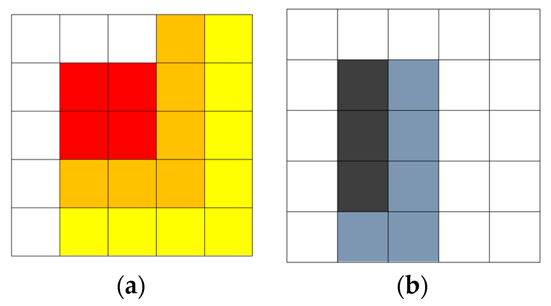 - Alexandridis, A.; Russo, L.; Vakalis, D.; Bafas, G.V.; Siettos, C.I. Wildland fire spread modelling using cellular automata: Evolution in large-scale spatially heterogeneous environments under fire suppression tactics. Int. J. Wildland Fire 2011, 20, 633–647. [Google Scholar] [CrossRef]