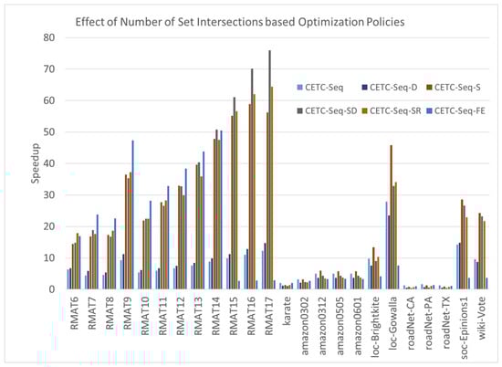 We can say the top four set intersection-based triangle counting algorithms include our novel CETC-Seq-S and CETC-Seq algorithms. The performance of CETC-Seq-S with an average rank of 2.80 is slightly worse than that of FH with an average rank of 2.0. The average rank of FHD is 4.6 and CETC-Seq is 6.4.