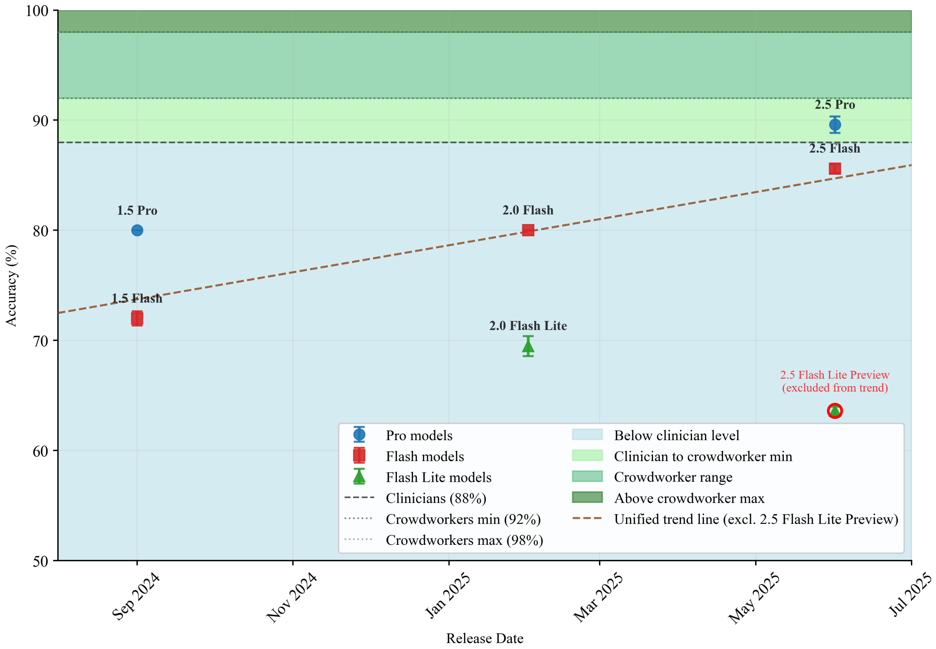 | 2.5 Flash Lite Preview | LR5 | 63.6 ± 1.1 | 60.5 ± 1.0 | 80.0 ± 0.0 | 47.2 ± 2.2 | 66.0 ± 1.6 | 62.2 ± 1.3 |
