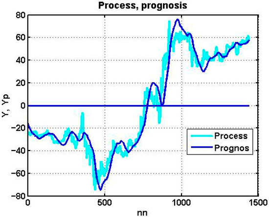 Modern efforts toward highly automated production—commonly encapsulated under the label Industry 4.0 [1,2]—envision progressively autonomous control of technological processes with minimal human intervention. A major challenge in this context is the regulation and short-term forecasting of processes that unfold in unstable immersion media [3,4], such as turbulent gas—and hydrodynamic flows characteristic of chemical, petrochemical, biochemical, and related industries [5,6,7,8,9]. Time series observed in these environments depart markedly from textbook notions of stationarity: they exhibit nonstationary variability, oscillatory and aperiodic trajectories of the system component, and strong low-frequency contamination in the noise. Such properties undermine the applicability of classical statistical analysis and forecasting techniques grounded in stationary white-noise assumptions.