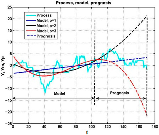 Example of polynomial forecasting of a nonstationary stochastic process using polynomials of order 1, 2, and 3.