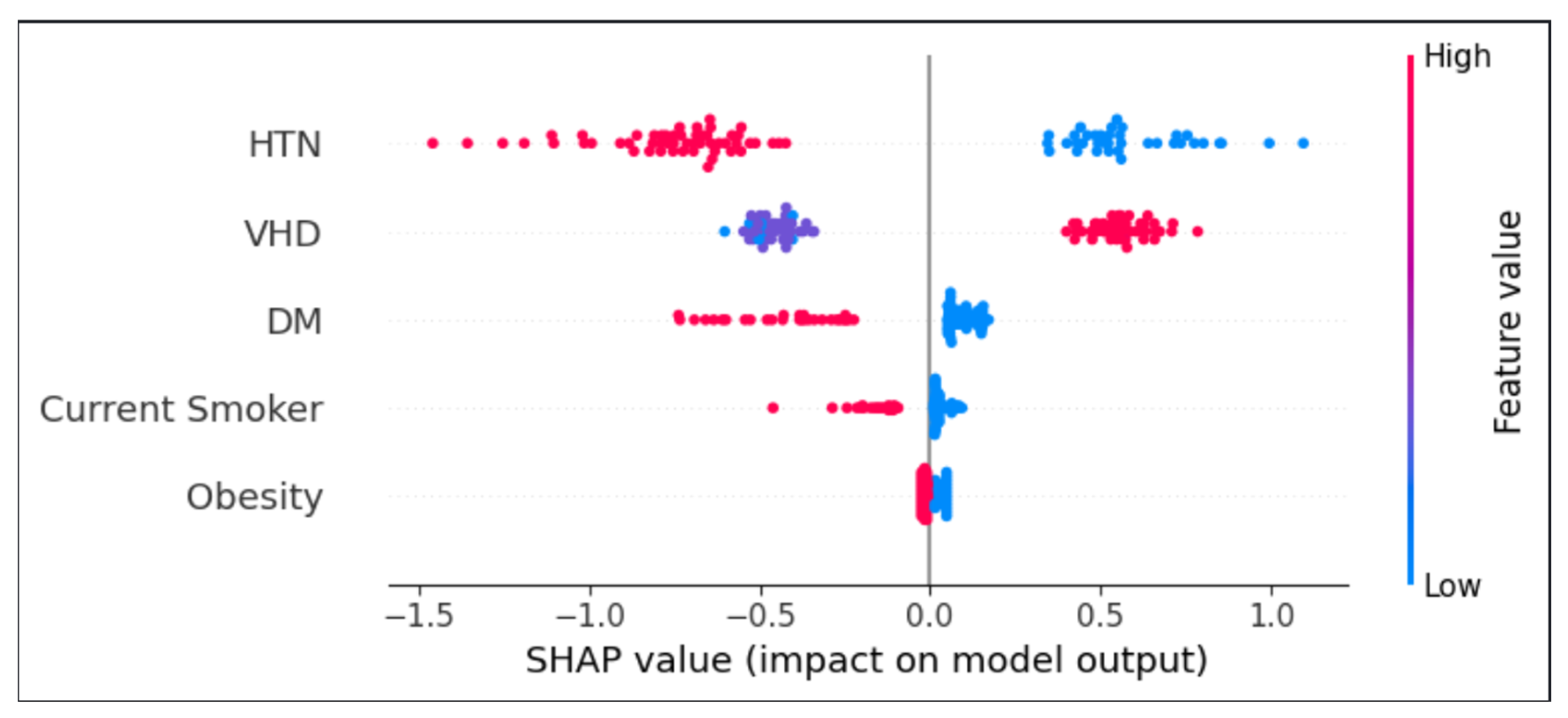 Tasmurzayev, N.; Baigarayeva, Z.; Amangeldy, B.; Imanbek, B.; Kurmanbek, S.; Dikhanbayeva, G.; Amirkhanova, G. Interpretable Machine Learning for Coronary Artery Disease Risk Stratification: A SHAP-Based Analysis. Algorithms 2025, 18, 697. https://doi.org/10.3390/a18110697