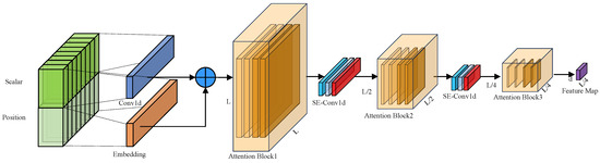 During the data processing phase, the raw data is first preprocessed through two components: Scalar and Position. In the Scalar component, the Conv1d technique is employed to extract local features and address the local dependencies within sequential data. In the Position component, positional embedding and token embedding are employed to retain the sequential information and semantic representations of the data.
