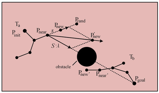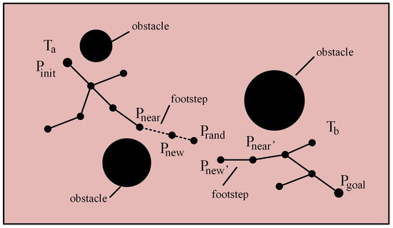 Schematic diagram of the extension of the traditional Bi-RRT algorithm.