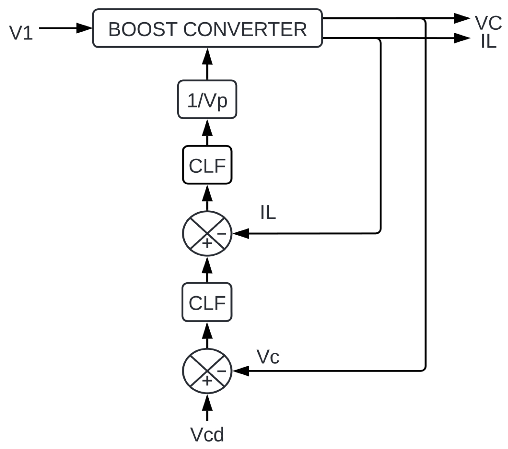 - An extended system representation that includes integral errors in both the current and voltage control loops, achieved by hierarchically designing both CLFs under a common stability framework, where the inner current loop dynamics explicitly define the virtual control input of the outer voltage loop, ensuring coherent and stable interaction between both subsystems;