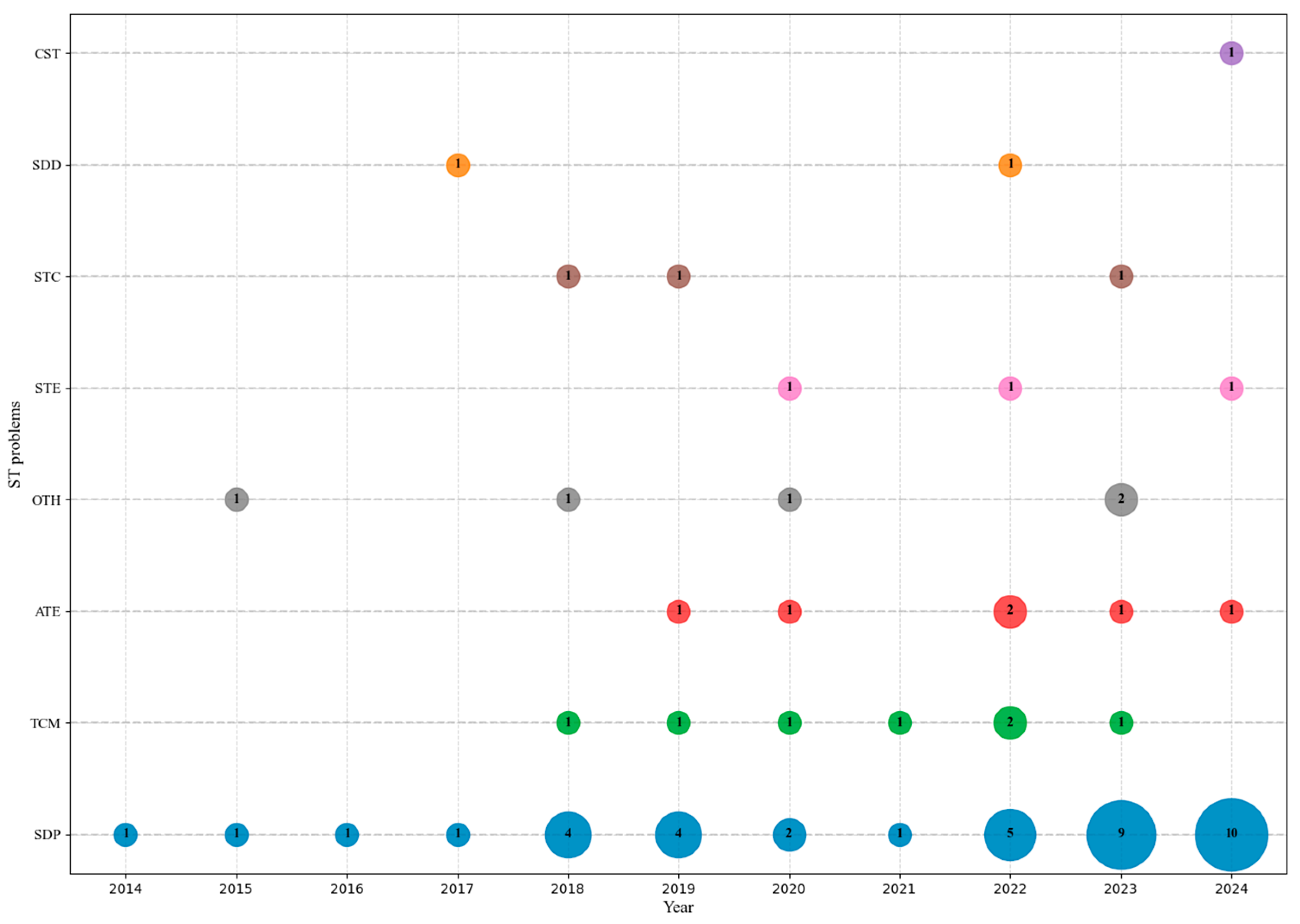 3.5.1. RQ1: Which AI Algorithms Have Been Used in ST, and for What Purposes?
