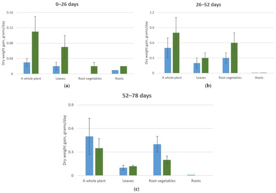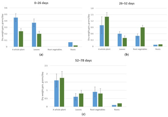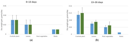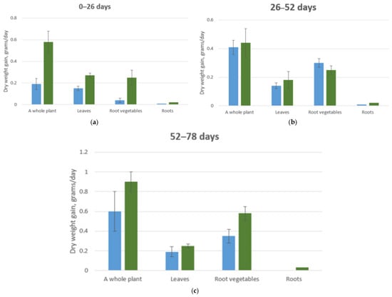 K1—the growth rate of raw and dry biomass of plant organs [43,44];