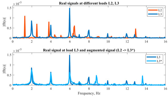 Beyond architectural limitations, some methodological constraints should be acknowledged. The augmentation primarily addresses frequency shifts in fault harmonics but does not perfectly replicate amplitude variations, as seen in Figure 6. The amplitude of fault components is also influenced by load and other factors [9]; incorporating this relationship could further enhance the physical fidelity of the synthetic data.