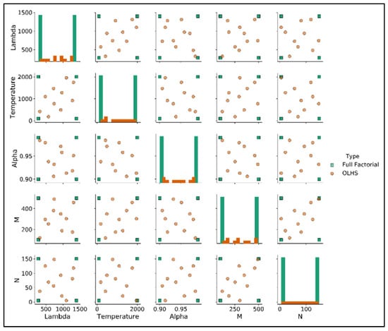 In space-filling designs such as OLHS, there is no strict rule for how many design points are required. The choice depends on the problem dimension, the smoothness of the response, and the desired balance between design coverage and the total number of experiments [28,35].