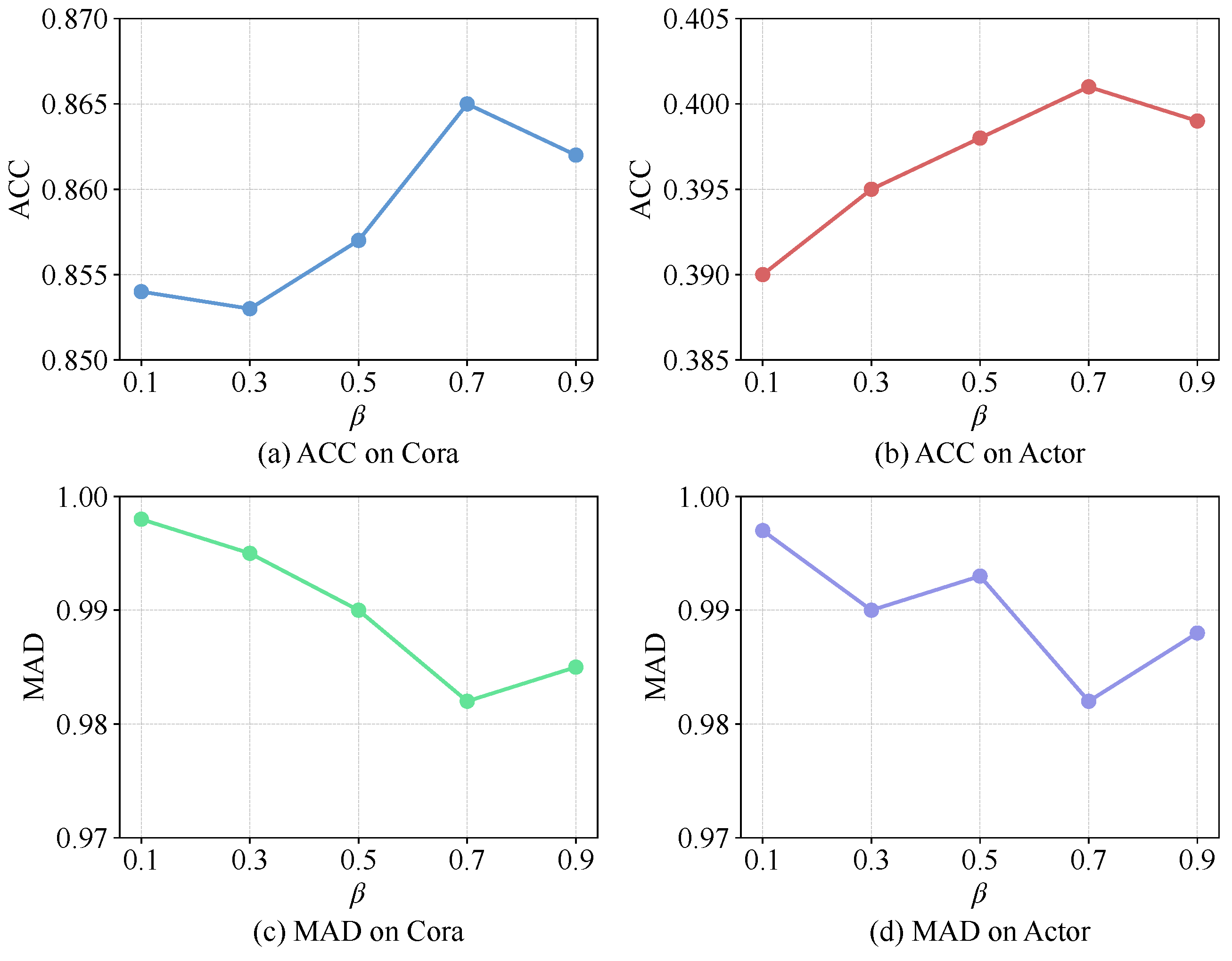 - Column-wise random masking acts as a dynamic neighbor filter. It randomly freezes a subset of feature channels during aggregation, limiting the influx of redundant information from high-order neighbors and preserving the node’s intrinsic features from the previous layer.