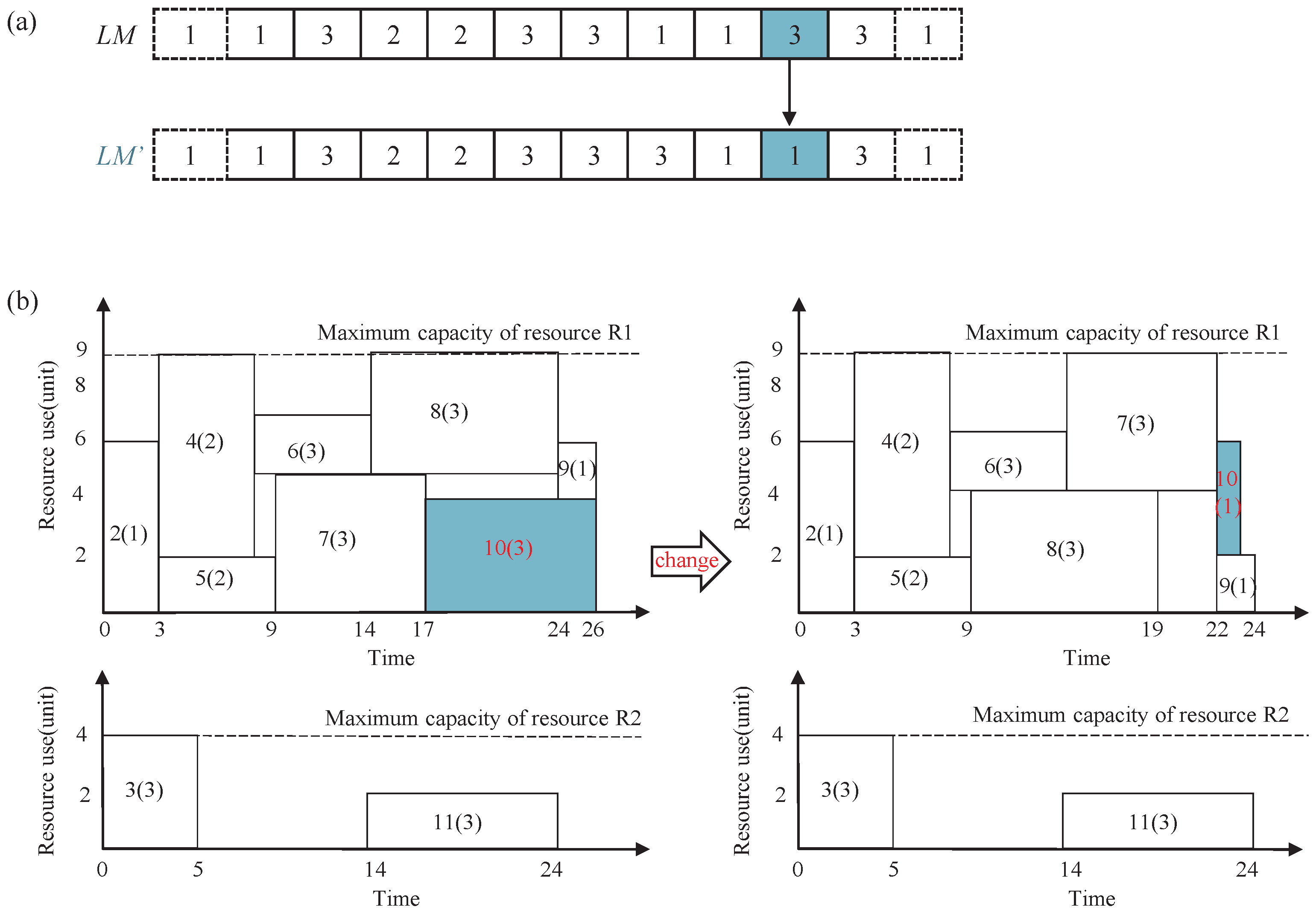 i can only start after its immediate predecessor tasks are completed. Constraint (5) stipulates that the amount of renewable resources in time period