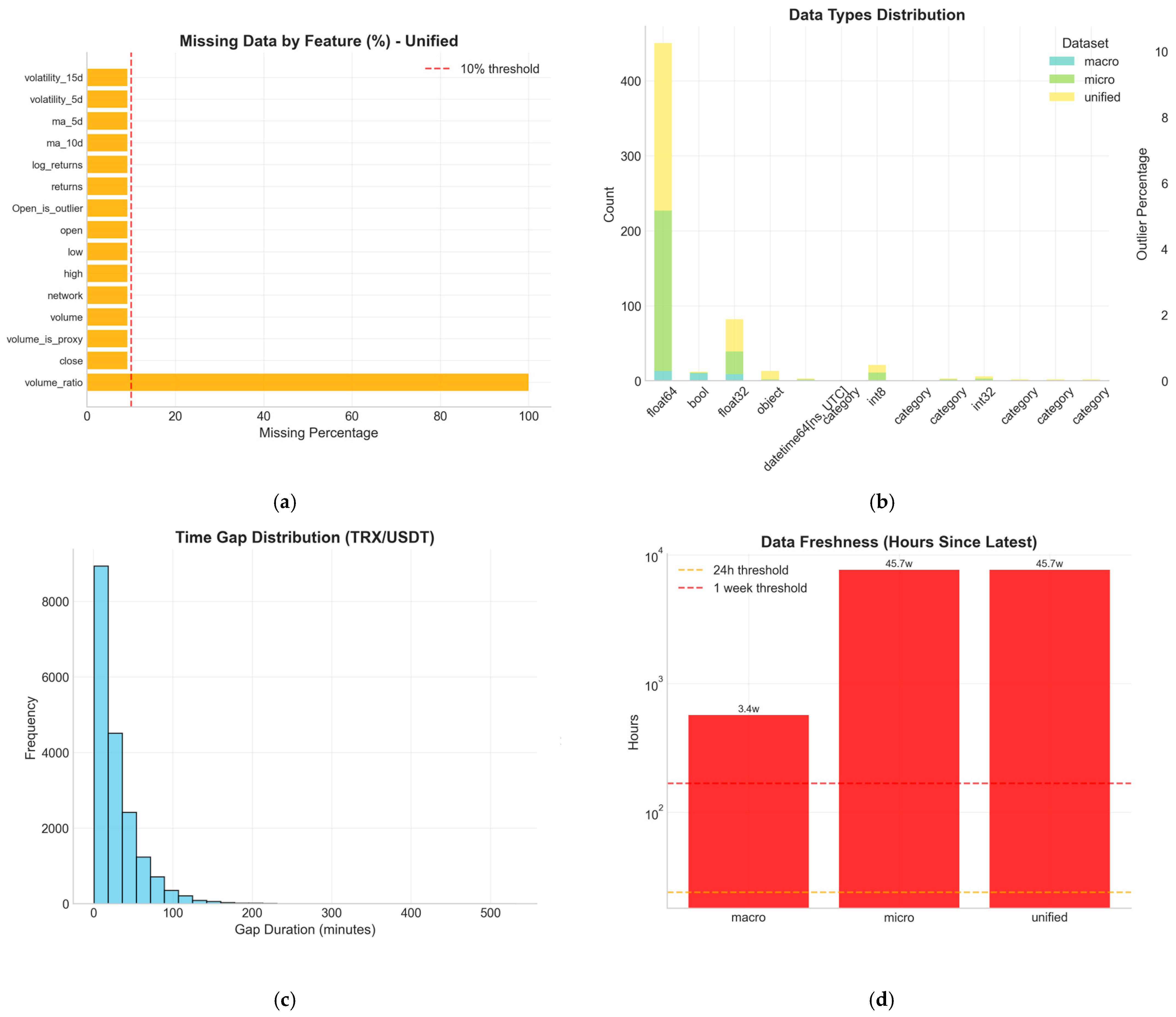 The results presented in this study are derived from 11 major cryptocurrency pairs with high liquidity and complete macro–microstructure data coverage. Generalization to smaller-cap cryptocurrencies, synthetic blockchain assets, or emerging DeFi tokens requires empirical validation, as lower liquidity and different market microstructure characteristics may substantially alter performance. The framework’s applicability to non-cryptocurrency blockchain-native assets (e.g., tokenized securities, NFTs) remains untested and represents an important direction for future research [