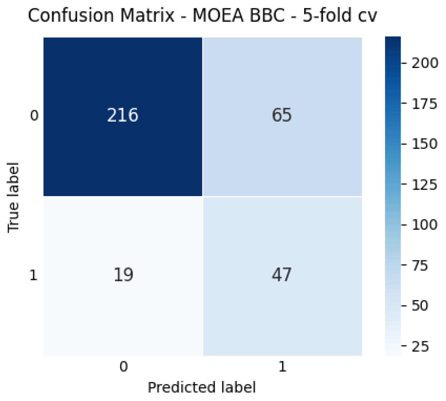 Across the win–loss analyses based on BA and the complementary results for F1, the best overall configuration is the MOEA paired with BBC. Close contenders are the balanced SVC with both EA and MOEA, reinforcing that embedding FS within an evolutionary wrapper that optimizes BA under a clinically motivated sensitivity constraint yields consistent advantages in imbalanced settings. These results are achieved without altering the original data distribution (no over-/under-sampling at the data level), which is desirable in medical cohorts where sample sizes are modest and the minority class is scarce. Averaged across the five folds, our MOEA BBC achieves a BA of 0.741, computed by averaging the best execution from each of the five folds.