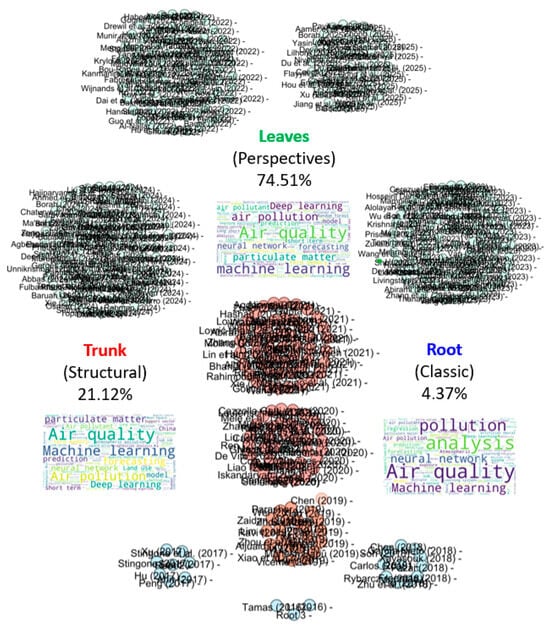 The documents from this period show a marked evolution towards advanced artificial intelligence, evidenced by the high frequency of terms such as machine learning, deep learning, LSTM, XGBoost, and real-time prediction. The prominent presence of air quality and PM2.5 indicates a strong alignment with international environmental monitoring standards. Also, concepts such as sensor networks, spatial resolution, and IoT emerge, reflecting a shift towards distributed, adaptive, and real-time operational capability architectures for air pollution prediction.