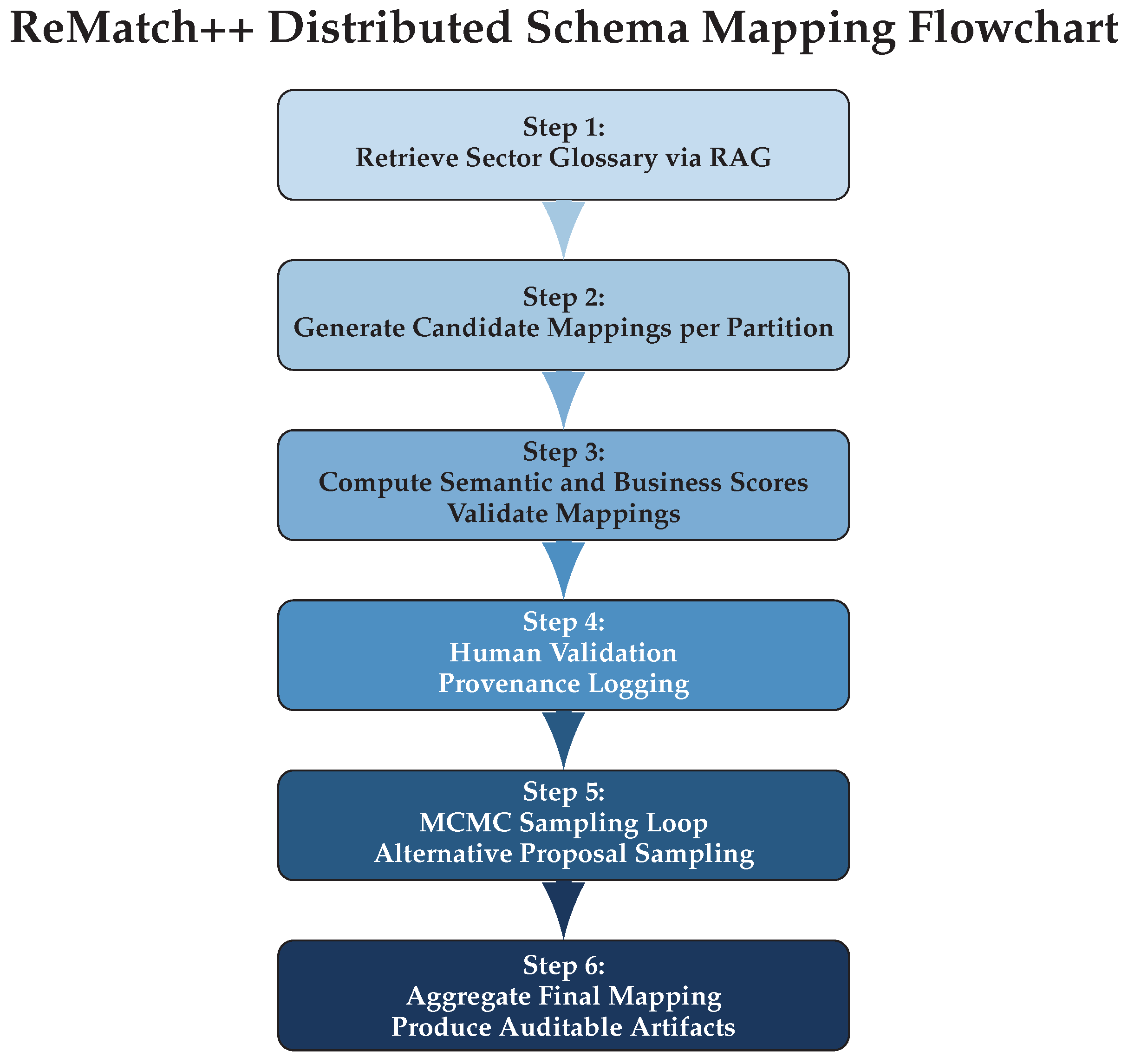 Figure 10, the performance of ReMatch + algorithm is shown in terms of mapping in all three regions, and this study has indicated that the algorithm has consistently recorded high performance on mapping. Mean values of SWMC are not less than 0.90, which is an indication of well-developed semantic consistency, and high mapping accuracy. Interestingly, the small credible intervals found using MCMC sampling also provide an indication that the system gives stable and reproducible results, even when executed in a distributed manner. Within a single cluster configuration, repeated runs show stable aggregates; however, quantifying variance across heterogeneous nodes and clusters is left as future work, and the claim of distributed reproducibility should be interpreted in that scope.