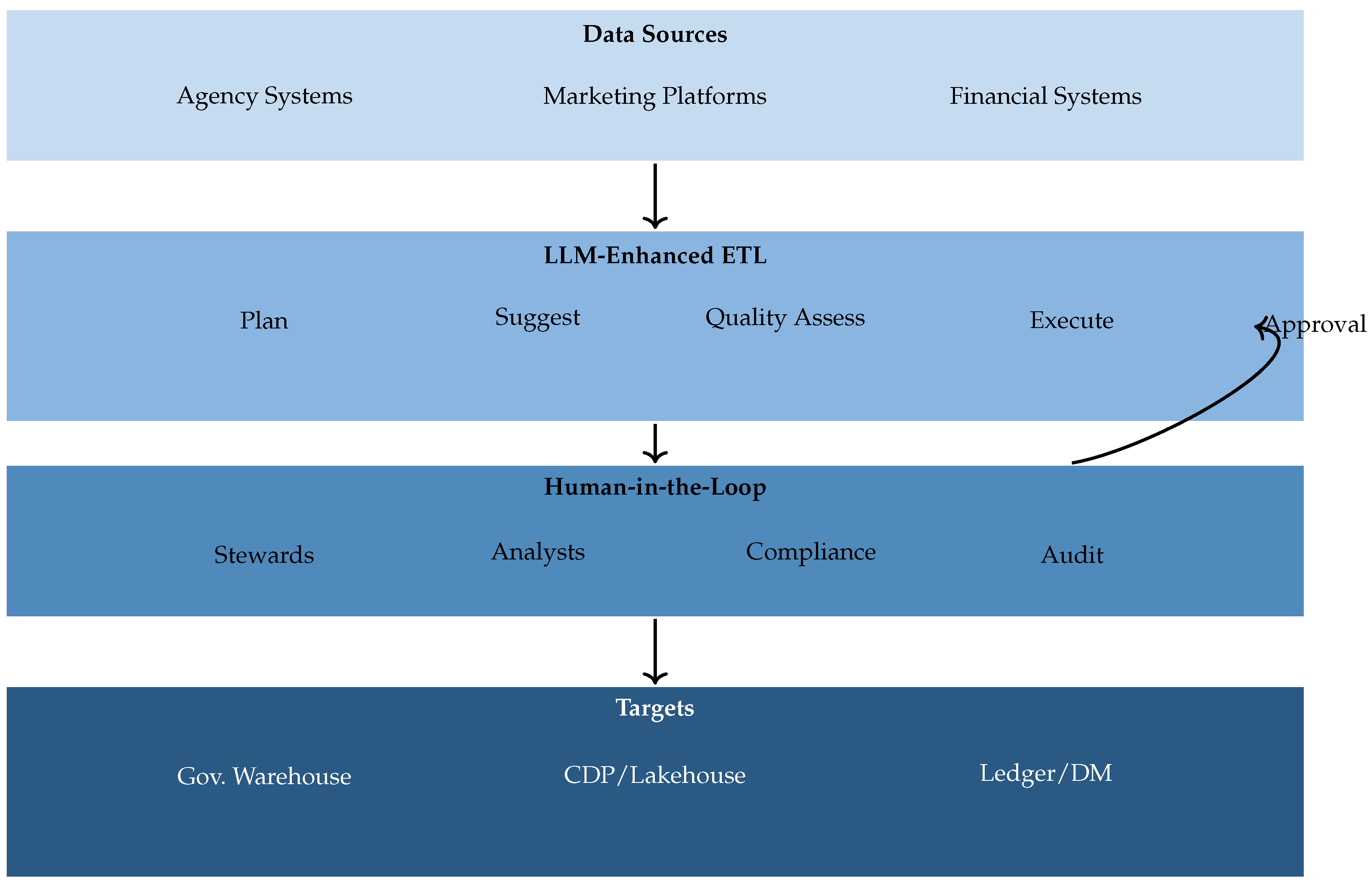We propose a scalable and adaptable framework for integrating large language models as governed and auditable elements within enterprise data pipelines, which, to our knowledge, has not previously been implemented in this specific combination.