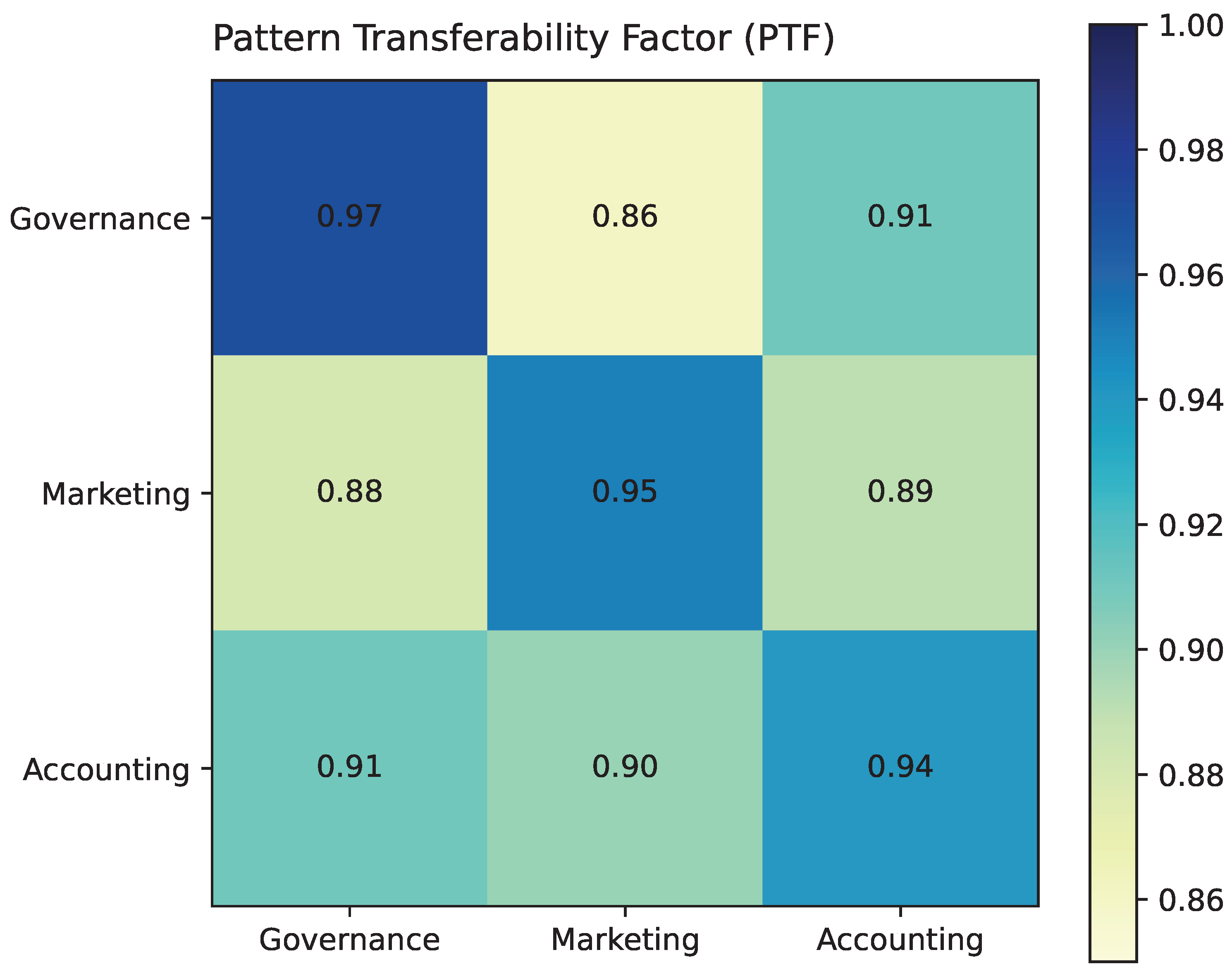 Figure 17 highlights the architecture’s adaptability: patterns developed for one domain transfer effectively to others, underscoring flexibility beyond the initially evaluated sectors.