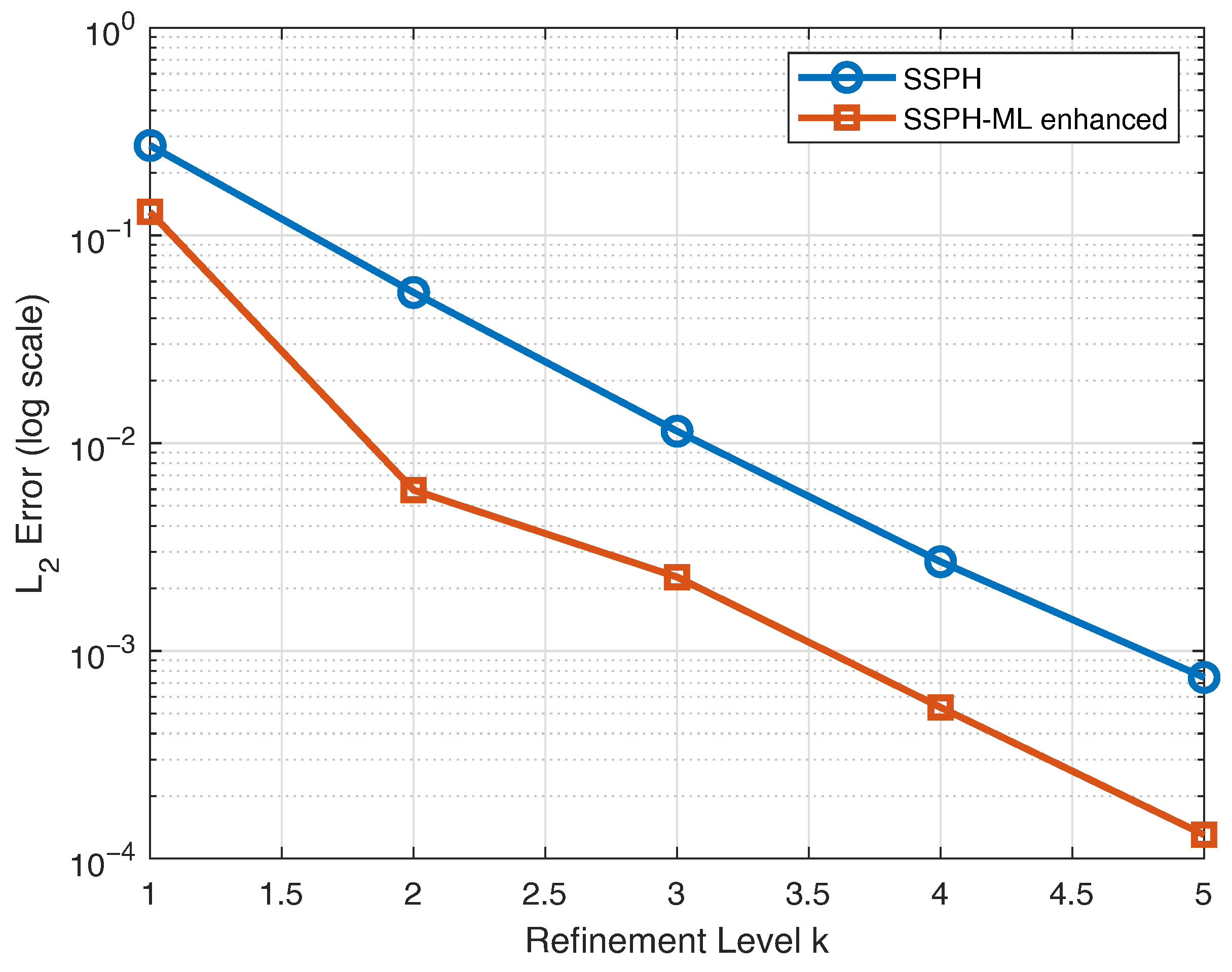 grid, comparing the standard SSPH solution with the proposed ML-enhanced formulation.