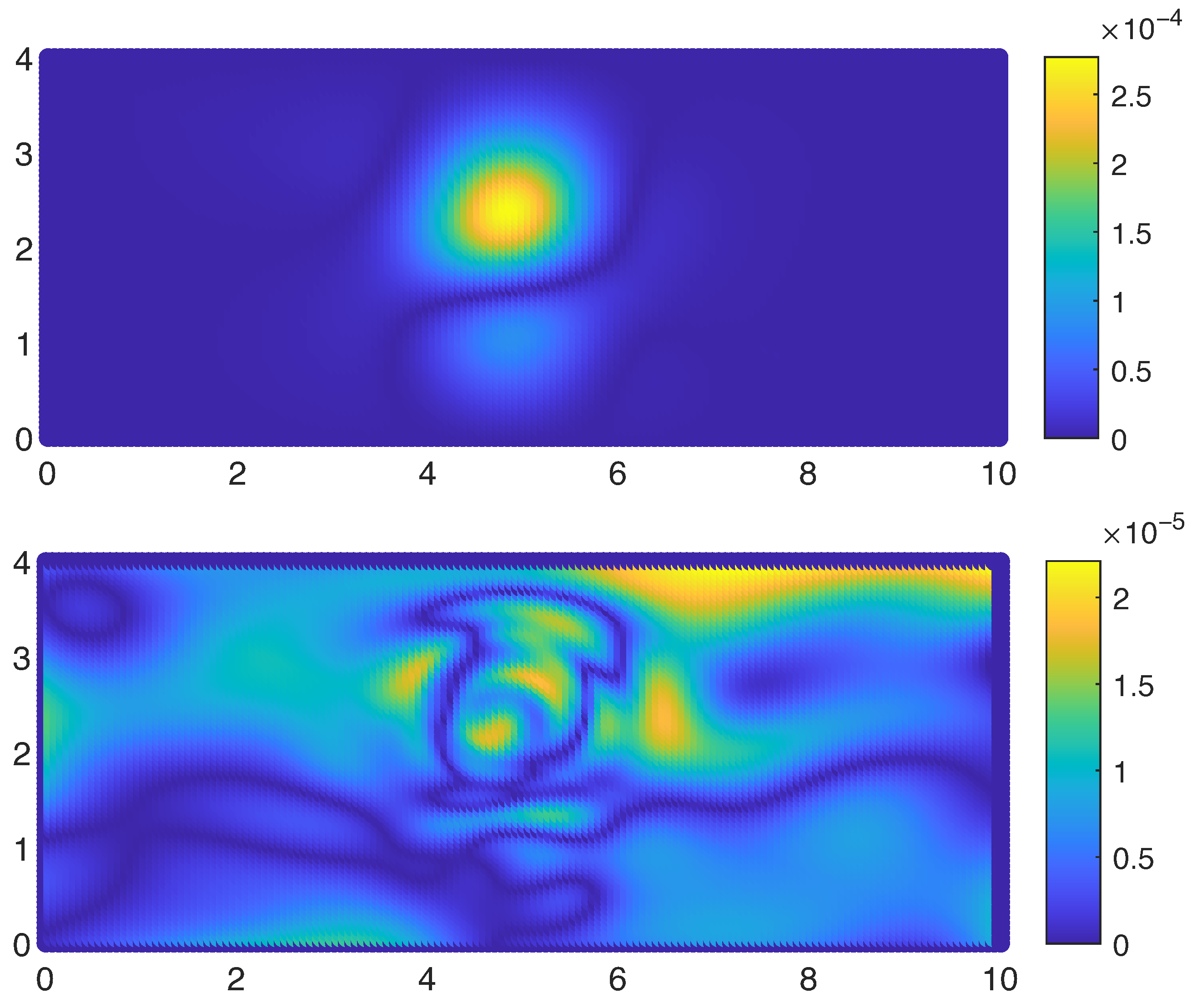 Figure 6. The proposed method clearly achieves a lower overall error, while the SSPH solution produces a smoother error field. This is expected for SSPH schemes enhanced with ML-based residual correction: the correction mainly focuses on regions with high local error. As a result, the absolute error field may appear slightly less smooth, but the global error is significantly reduced. The smoothness difference becomes less pronounced at higher grid resolutions.