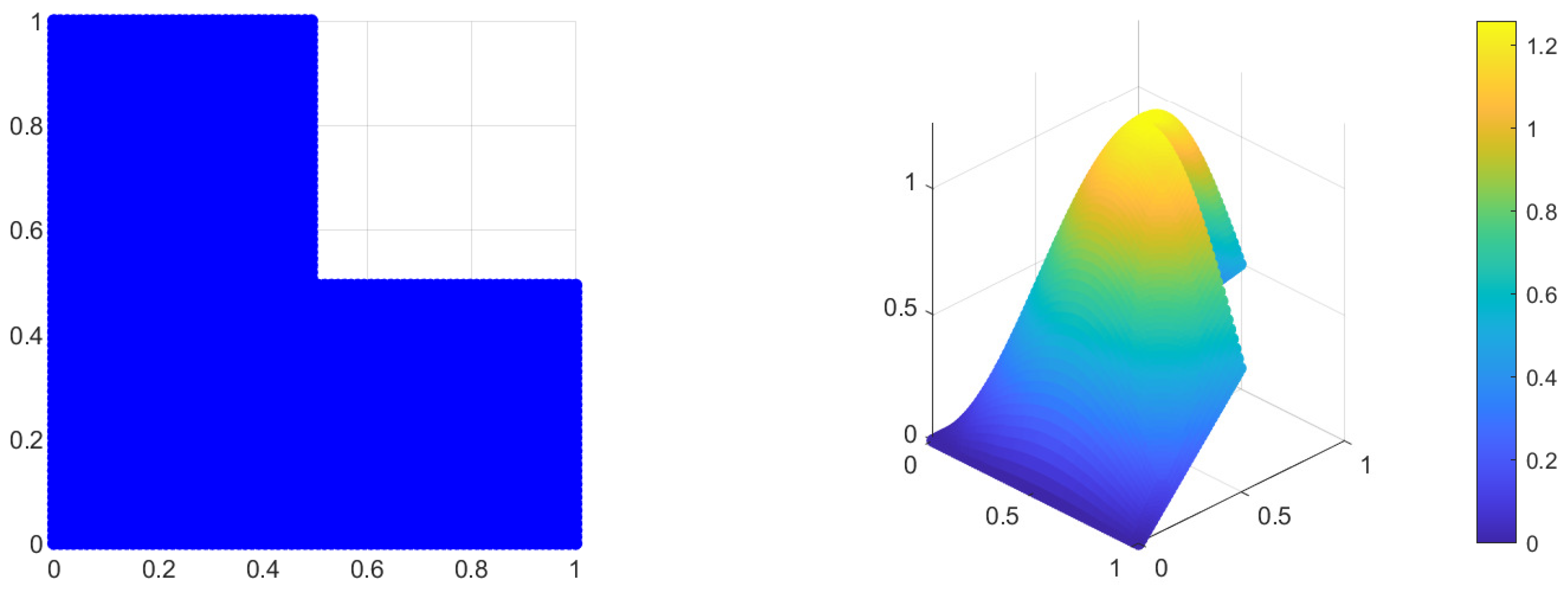 9) on an L-shaped domain, which is chosen due to its geometric complexity and the presence of a singularity at the reentrant corner. This makes it a challenging test case to evaluate the effectiveness of the proposed approach. The domain is defined as