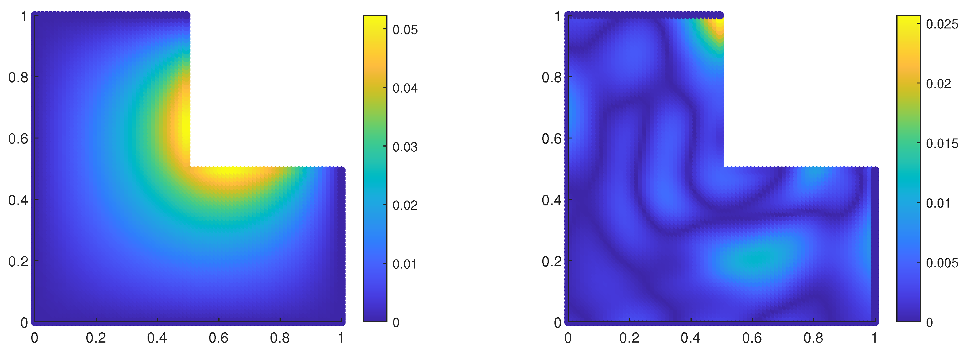 The results of this example demonstrate that the ML-enhanced SSPH performs robustly, even in the presence of singularities at the reentrant corner. The method consistently reduces errors compared to the standard SSPH, particularly near regions of high local error. This confirms the effectiveness of the proposed approach for complex geometries.