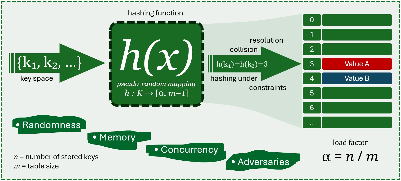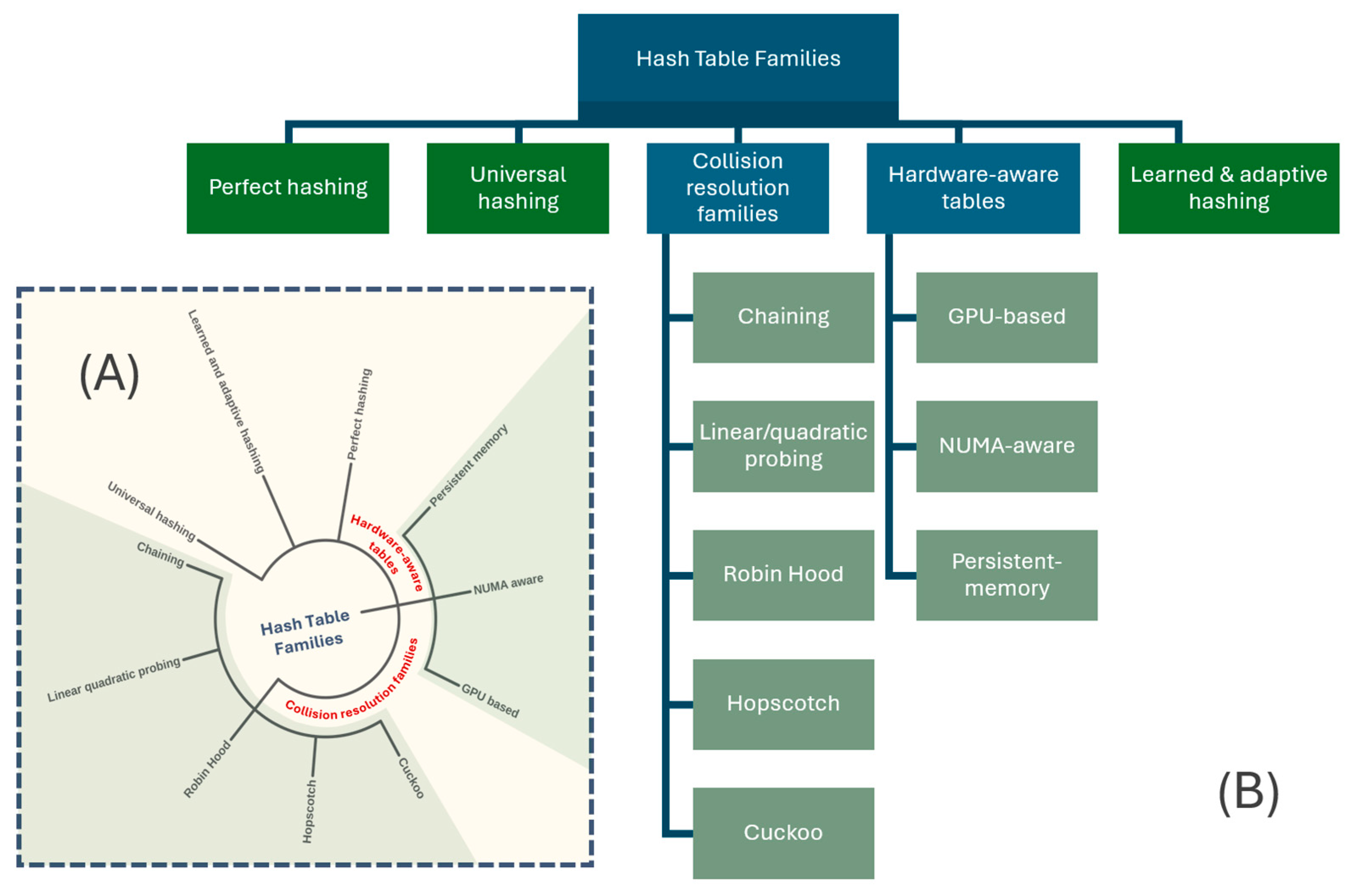 | Robin Hood [11] | Tight distribution of probe distances at high load | Good concurrency with controlled relocation | Slightly costlier insertion due to displacement |