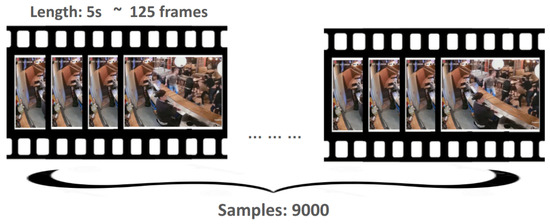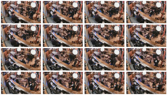 Each video was segmented into non-overlapping 5-s fragments, with a frames-per-second (FPS) rate ranging between 25 and 30 FPS, resulting in samples of approximately 125 frames per fragment, as illustrated in Figure 2. Ensuring temporal consistency in each video clip was a key aspect of this process. Only the samples that consistently depicted the labeled incident throughout the entire 5-s duration were selected. This procedure was conducted with precision to ensure that each sample consistently and accurately represented the labeled incident.