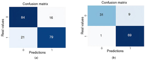 Confusion matrix training at 64 frames. (a) Experiment 1. (b) Experiment 4.